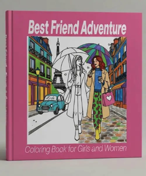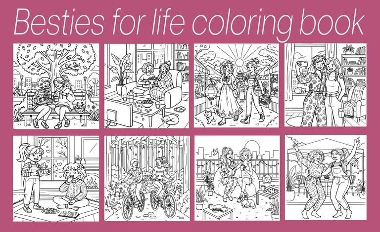 Whether you're coloring side-by-side with your best friend or enjoying peaceful solo time, this book invites you to relax, laugh, and reconnect through art.