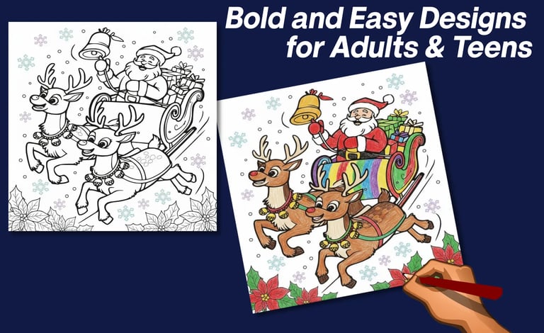 Perfectly crafted for adults and teens, each page blends bold, easy-to-color designs with delightful festive elements, making it the ideal holiday escape.
