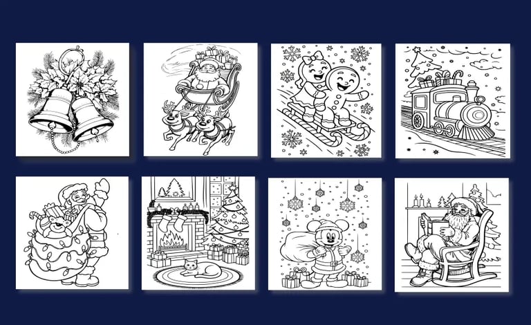 Relax with bold, easy Christmas coloring pages for adults and teens. Cozy holiday scenes, cute characters, and stress-relief designs for festive relaxation.